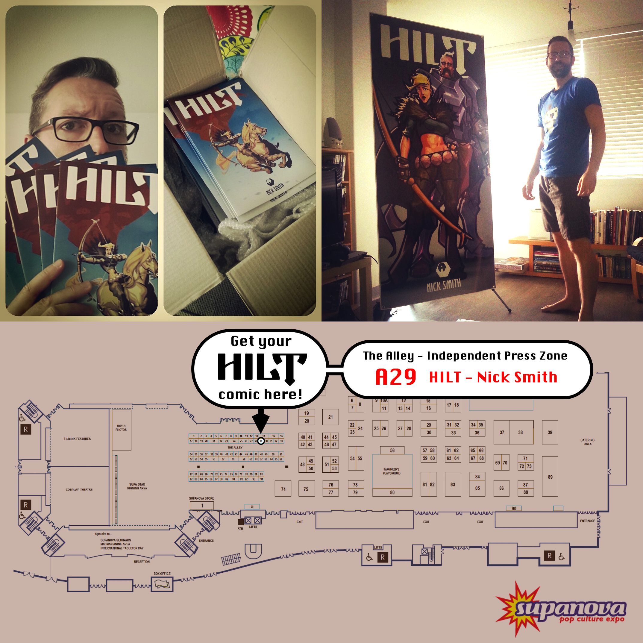 Looking forward to this weekend’s Supanova at the Gold Coast convention centre. You can find me at booth A29 in the Independent Press Zone of The Alley. I’ll be there selling my comic Hilt with my mate Zachary so come by, say ‘hi’ and buy!