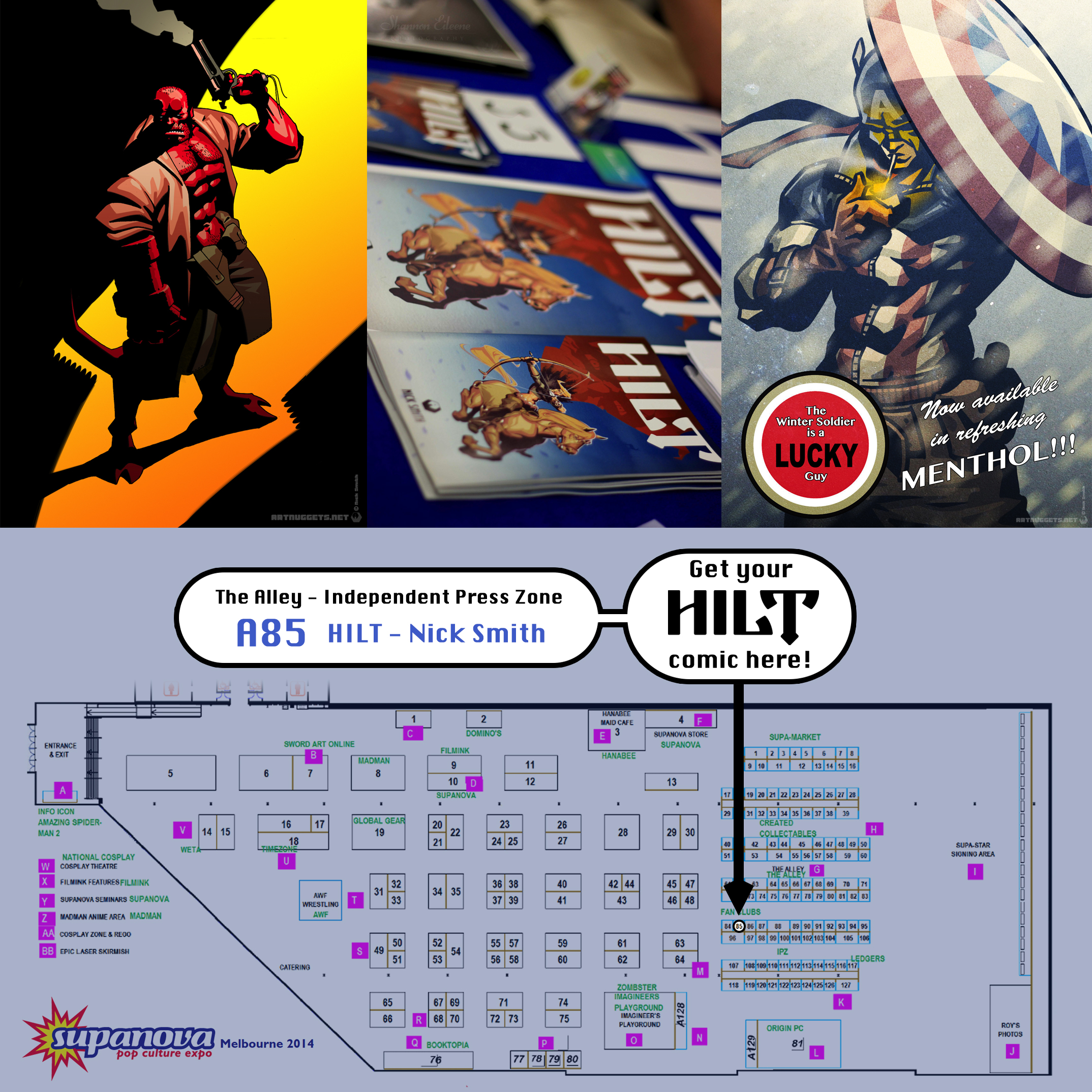 Another weekend, another Supanova Pop Culture Expo. This time it’s down in Melbourne, at the Showgrounds in Ascot Vale. You’ll be able to find me in The Alley at Booth A85, where I’ll be pimping my new comic Hilt, as well as prints. Hope to see some of you Victorians there!